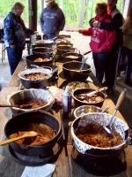 The weather was good on Friday and by Saturday afternoon is became a a wet day of cooking. We were prepared and w\e went on with our day of cooking and fellowship. If our count was right, we had 24 black pots and 18 cooks. This includes the buffet and snacks for the whole day. What a Great Weekend!